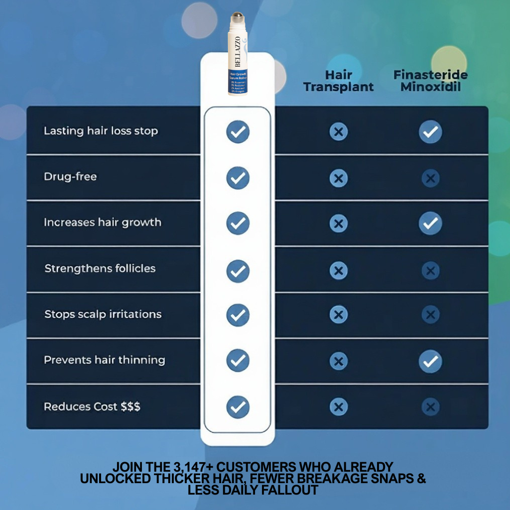 Unlike messy droppers, our roll-on delivers targeted, waste-free application with 4 proven actives like 3% Redensyl and Rosemary. It focuses on outcomes: 77% less fallout and stronger roots, backed by clinical stats for real, lasting regrowth.